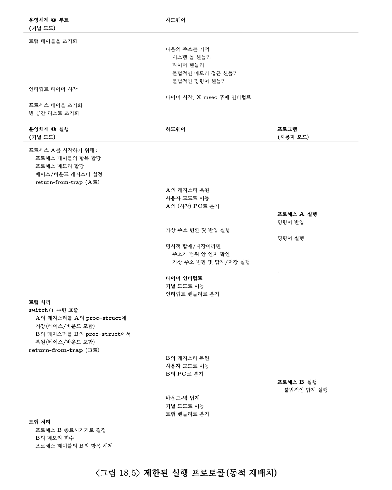 하드웨어/OS의 상호작용을 타임라인으로 보여준다. 재부팅할때 컴퓨터를 사용 가능한 상태로 만들기 위하여 운영체제가 무앗을 하는지 보여 준다.