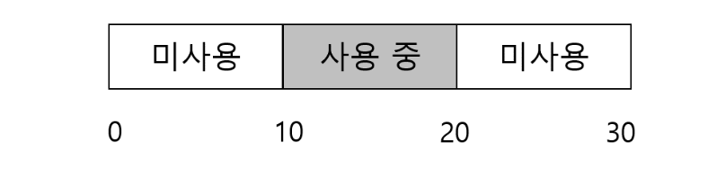 - 총 빈 공간이 20바이트여도 10바이트짜리 두 개로 나뉘어 있으면, 15바이트 요청은 실패