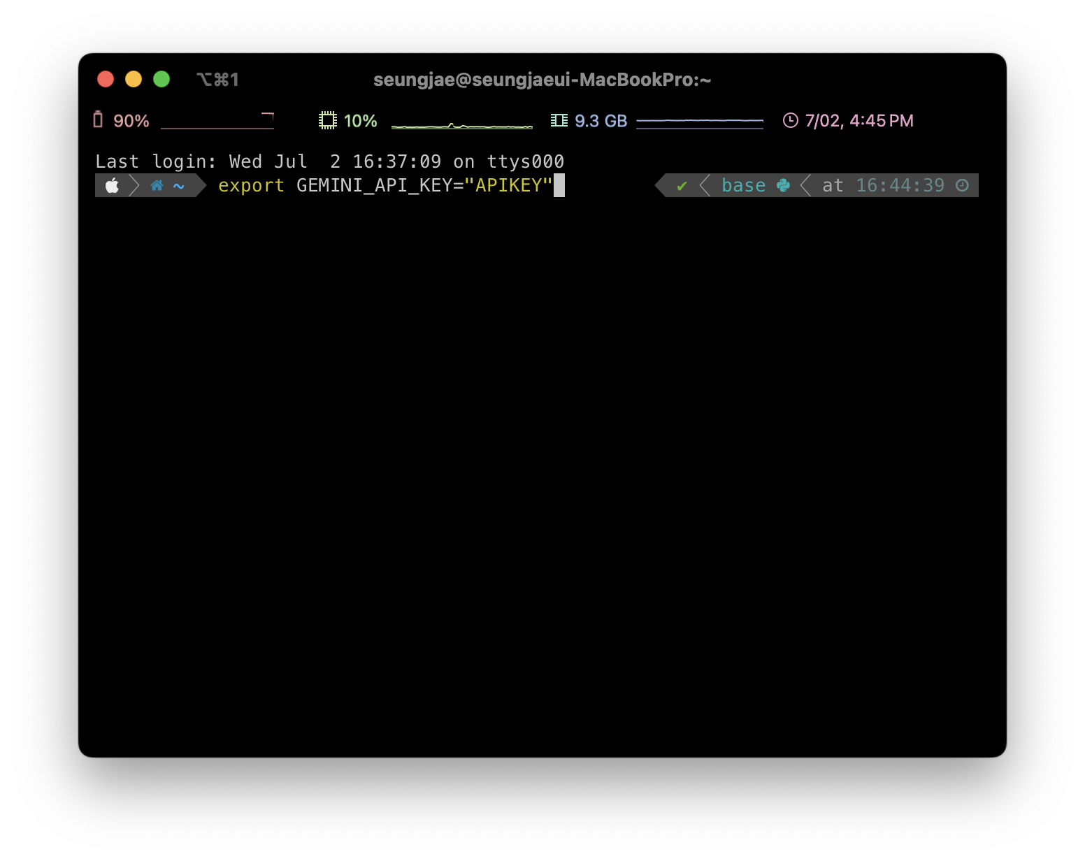 ~/.zshrc 파일에 alias을 추가하여 gemini 명령어를 간편하게 사용하도록 설정하면 좋겟네요