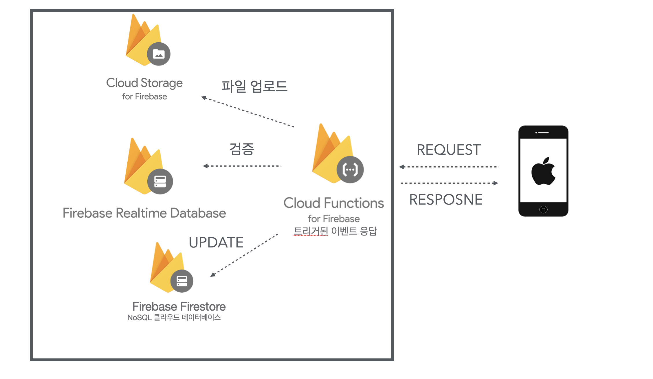 그렇게 나는 프로젝트 규모, 학습에 필요한 시간적인 여유와 실현 가능성을 고려해 Firebase ServerLess를 선택했고 서버 아키텍처 설계 & iOS Firebase 통신 모듈에 대한 설계를 맡았다.
